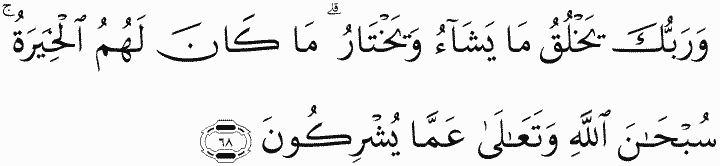 And your Lord creates what He wills and chooses; not for them was the choice. Exalted is Allah and high above what they associate with Him.