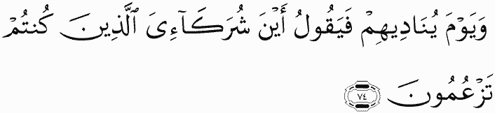 And [warn of] the Day He will call them and say, "Where are my 'partners' which you used to claim?"