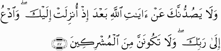 And never let them avert you from the verses of Allah after they have been revealed to you. And invite [people] to your Lord. And never be of those who associate others with Allah .