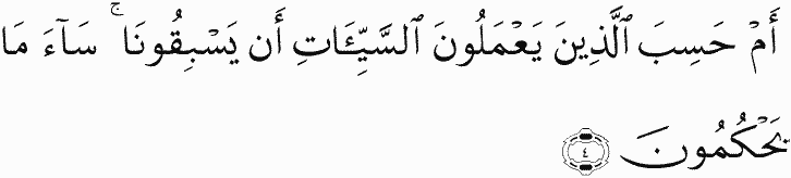 Or do those who do evil deeds think they can outrun Us? Evil is what they judge.