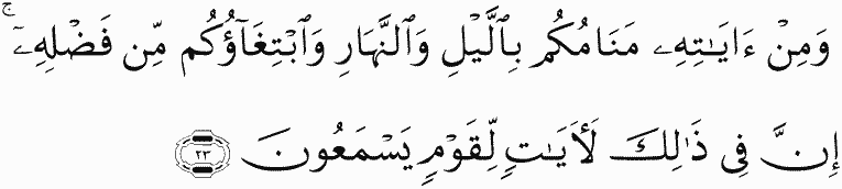 And of His signs is your sleep by night and day and your seeking of His bounty. Indeed in that are signs for a people who listen.
