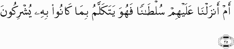 Or have We sent down to them an authority, and it speaks of what they were associating with Him?