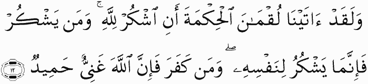 And We had certainly given Luqman wisdom [and said], "Be grateful to Allah ." And whoever is grateful is grateful for [the benefit of] himself. And whoever denies [His favor] - then indeed, Allah is Free of need and Praiseworthy.