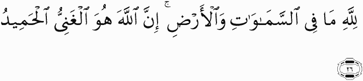 To Allah belongs whatever is in the heavens and earth. Indeed, Allah is the Free of need, the Praiseworthy.