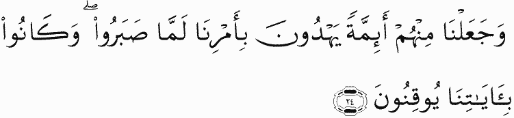 And We made from among them leaders guiding by Our command when they were patient and [when] they were certain of Our signs.