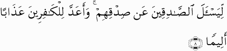 That He may question the truthful about their truth. And He has prepared for the disbelievers a painful punishment.