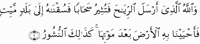 And it is Allah who sends the winds, and they stir the clouds, and We drive them to a dead land and give life thereby to the earth after its lifelessness. Thus is the resurrection.