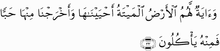 And a sign for them is the dead earth. We have brought it to life and brought forth from it grain, and from it they eat.