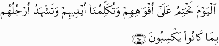 That Day, We will seal over their mouths, and their hands will speak to Us, and their feet will testify about what they used to earn.