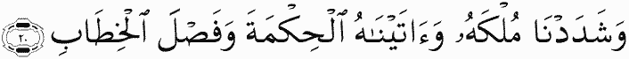 And We strengthened his kingdom and gave him wisdom and discernment in speech.