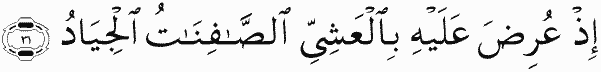 [Mention] when there were exhibited before him in the afternoon the poised [standing] racehorses.