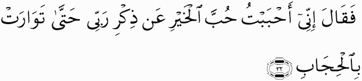 And he said, "Indeed, I gave preference to the love of good [things] over the remembrance of my Lord until the sun disappeared into the curtain [of darkness]."