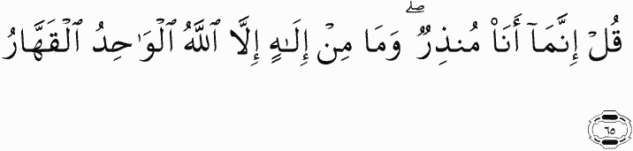 Say, [O Muhammad], "I am only a warner, and there is not any deity except Allah , the One, the Prevailing.