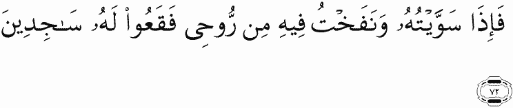 So when I have proportioned him and breathed into him of My [created] soul, then fall down to him in prostration."