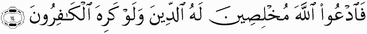 So invoke Allah , [being] sincere to Him in religion, although the disbelievers dislike it.