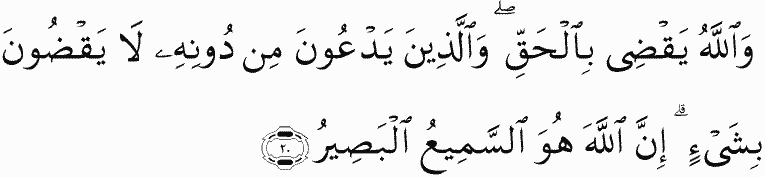 And Allah judges with truth, while those they invoke besides Him judge not with anything. Indeed, Allah - He is the Hearing, the Seeing.