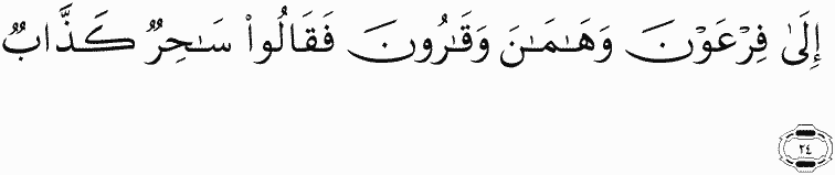 To Pharaoh, Haman and Qarun; but they said, "[He is] a magician and a liar."