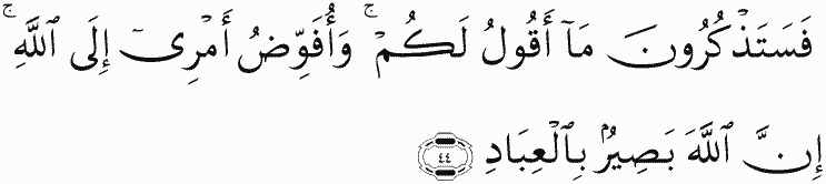And you will remember what I [now] say to you, and I entrust my affair to Allah . Indeed, Allah is Seeing of [His] servants."