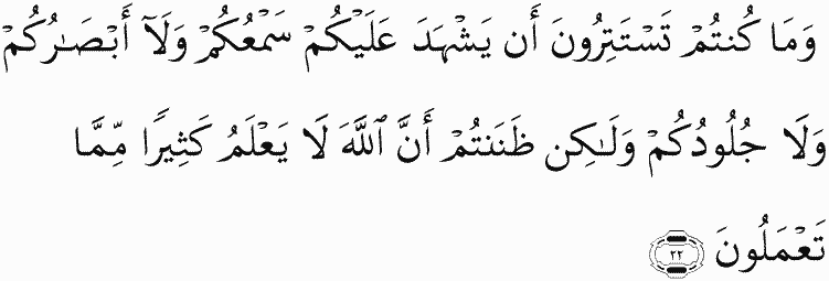 And you were not covering yourselves, lest your hearing testify against you or your sight or your skins, but you assumed that Allah does not know much of what you do.