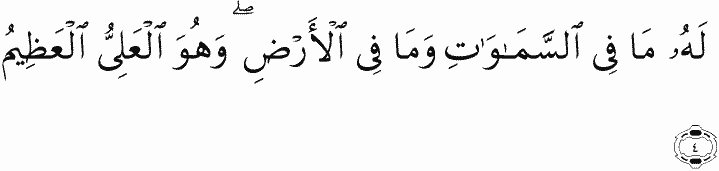 To Him belongs whatever is in the heavens and whatever is in the earth, and He is the Most High, the Most Great.