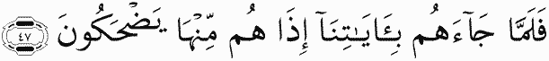 But when he brought them Our signs, at once they laughed at them.