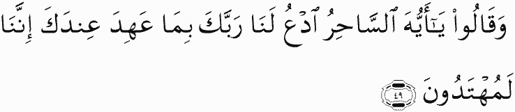 And they said [to Moses], "O magician, invoke for us your Lord by what He has promised you. Indeed, we will be guided."