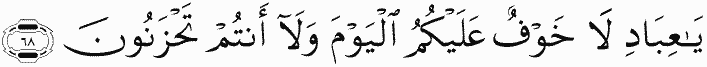 [To whom Allah will say], "O My servants, no fear will there be concerning you this Day, nor will you grieve,