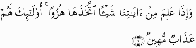And when he knows anything of Our verses, he takes them in ridicule. Those will have a humiliating punishment.