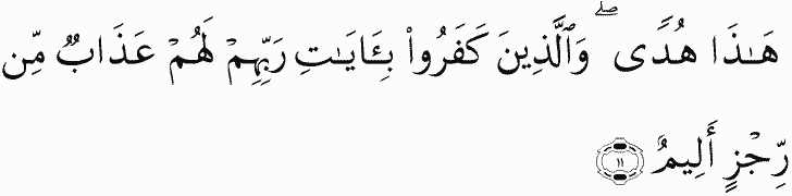 This [Qur'an] is guidance. And those who have disbelieved in the verses of their Lord will have a painful punishment of foul nature.