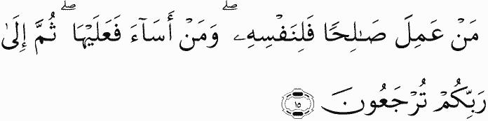 Whoever does a good deed - it is for himself; and whoever does evil - it is against the self. Then to your Lord you will be returned.