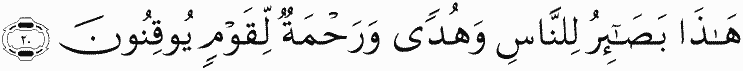 This [Qur'an] is enlightenment for mankind and guidance and mercy for a people who are certain [in faith].