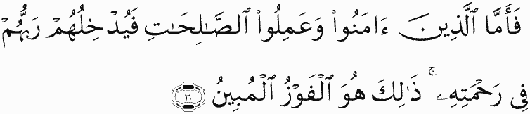 So as for those who believed and did righteous deeds, their Lord will admit them into His mercy. That is what is the clear attainment.