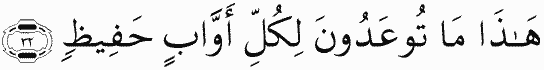[It will be said], "This is what you were promised - for every returner [to Allah ] and keeper [of His covenant]