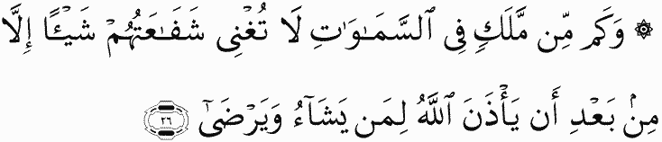 And how many angels there are in the heavens whose intercession will not avail at all except [only] after Allah has permitted [it] to whom He wills and approves.