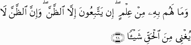 And they have thereof no knowledge. They follow not except assumption, and indeed, assumption avails not against the truth at all.