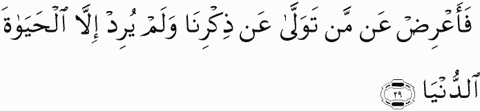 So turn away from whoever turns his back on Our message and desires not except the worldly life.