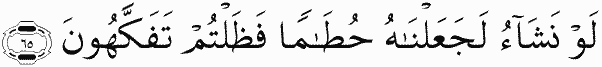 If We willed, We could make it [dry] debris, and you would remain in wonder,
