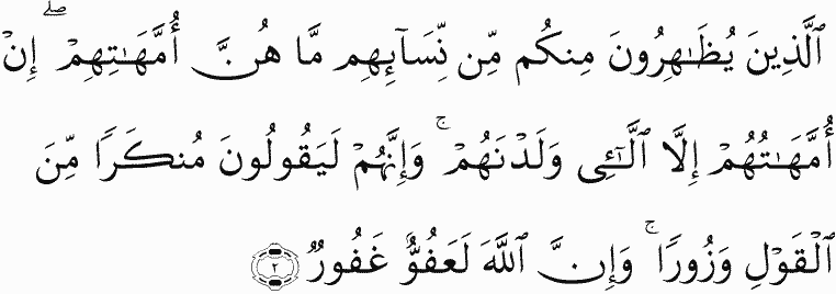 Those who pronounce thihar among you [to separate] from their wives - they are not [consequently] their mothers. Their mothers are none but those who gave birth to them. And indeed, they are saying an objectionable statement and a falsehood. But indeed, Allah is Pardoning and Forgiving.