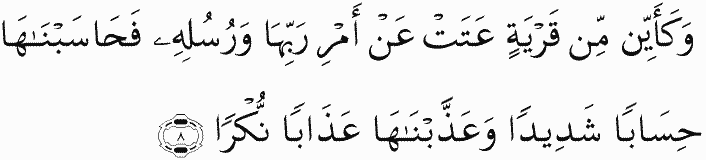 And how many a city was insolent toward the command of its Lord and His messengers, so We took it to severe account and punished it with a terrible punishment.