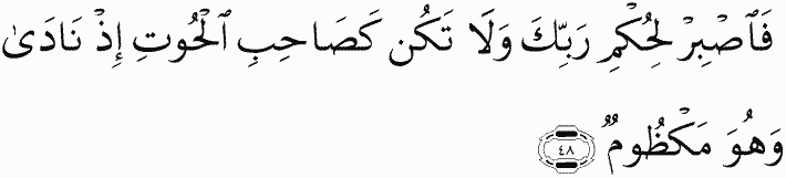 Then be patient for the decision of your Lord, [O Muhammad], and be not like the companion of the fish when he called out while he was distressed.
