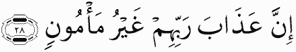 Indeed, the punishment of their Lord is not that from which one is safe -