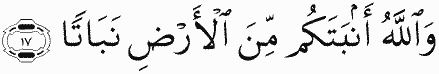 And Allah has caused you to grow from the earth a [progressive] growth.