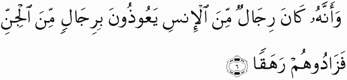 And there were men from mankind who sought refuge in men from the jinn, so they [only] increased them in burden.