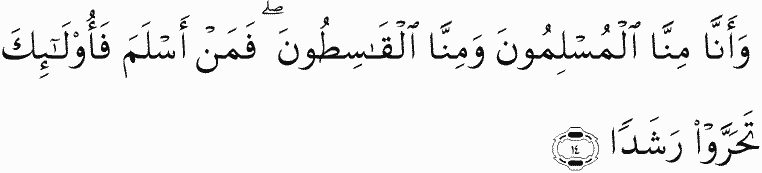 And among us are Muslims [in submission to Allah ], and among us are the unjust. And whoever has become Muslim - those have sought out the right course.