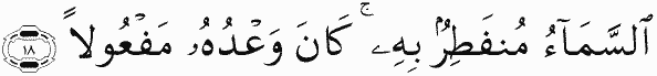 The heaven will break apart therefrom; ever is His promise fulfilled.