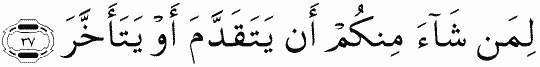 To whoever wills among you to proceed or stay behind.