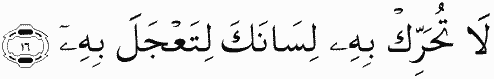 Move not your tongue with it, [O Muhammad], to hasten with recitation of the Qur'an.