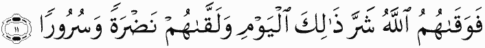 So Allah will protect them from the evil of that Day and give them radiance and happiness