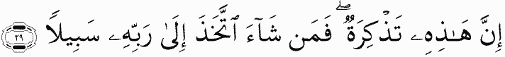 Indeed, this is a reminder, so he who wills may take to his Lord a way.