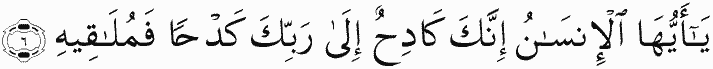 O mankind, indeed you are laboring toward your Lord with [great] exertion and will meet it.